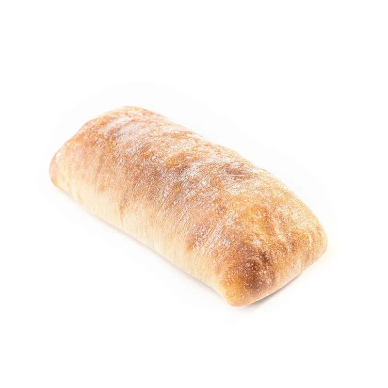 Ciabatta clasica, cu miez aerat si coaja subtire, acum si gata coapta. Poate fi consumata imediat dupa decongelare.