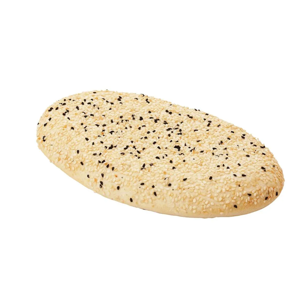 Paine ovala, din aluat de tip focaccia, decorata cu seminte de nigella si susan.