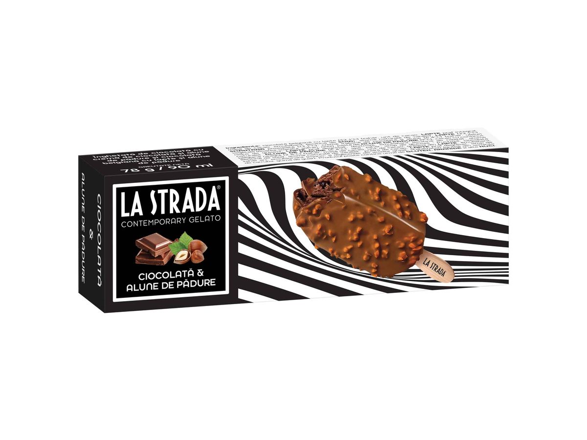 INGHETATA DE CIOCOLATA CU CREMA DE CIOCOLATA SI ALUNE DE PADURE INVELITA IN CIOCOLATA BELGIANA CU LAPTE SI ALUNE DE PADURE, 90 ml/78 g
