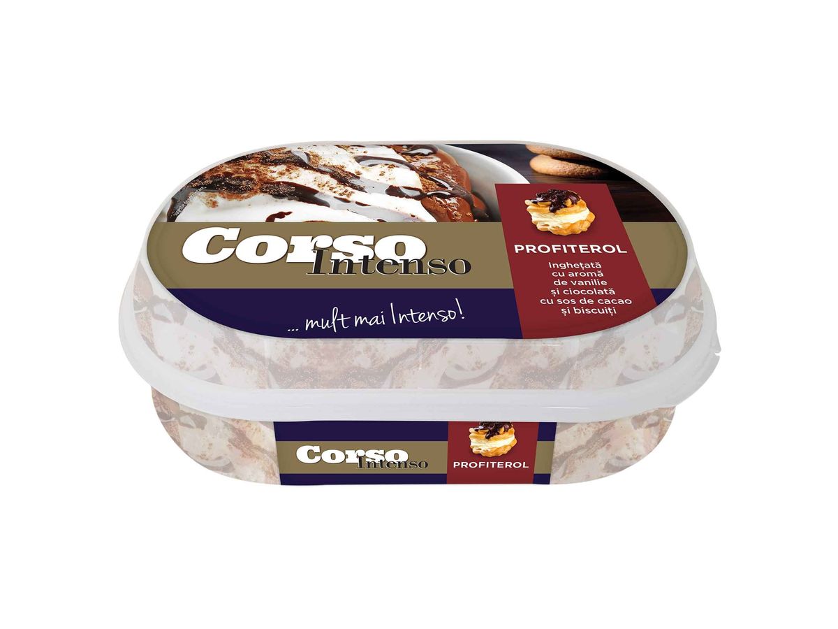 INGHETATA CU AROMA DE VANILIE (39%) SI AROMA DE CIOCOLATA (39%) CU SOS DE CACAO (19%) SI BISCUITI CU AROMA DE AMARETTO (3%).