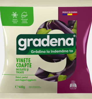 Vinetele coapte Gradena sunt pregătite din vinete proaspete, coapte lent pentru a-și păstra aroma autentică și textura fină. Ambalate convenabil în porții de 400 g, sunt gata de utilizat în diverse rețete – salate, sosuri, tartine sau garnituri. Fără aditivi sau conservanți, păstrează gustul natural și calitatea superioară datorită procesului de ambalare și conservare atent realizat.